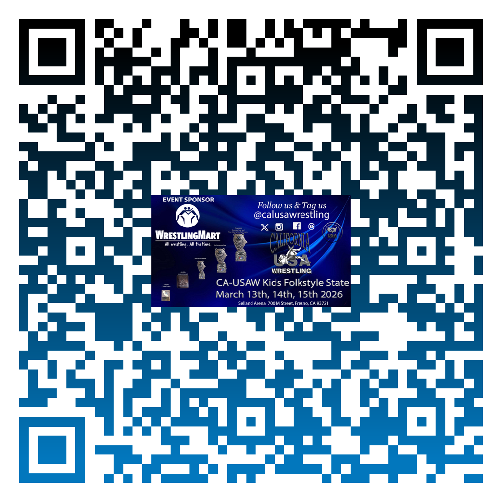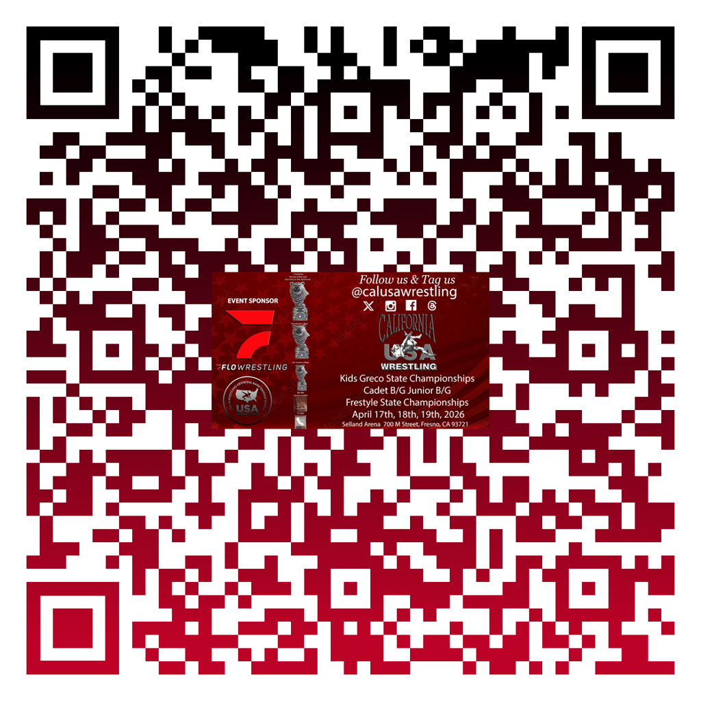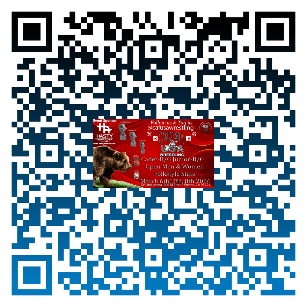 California USA Wrestling offers events in Women's and Men's Freestyle, Greco-Roman, Folkstyle, Grappling, and Beach. Whether you are looking for a local tournament to hone your skills or are preparing to become an Olympic champion, the road to success starts with California USA Wrestling.